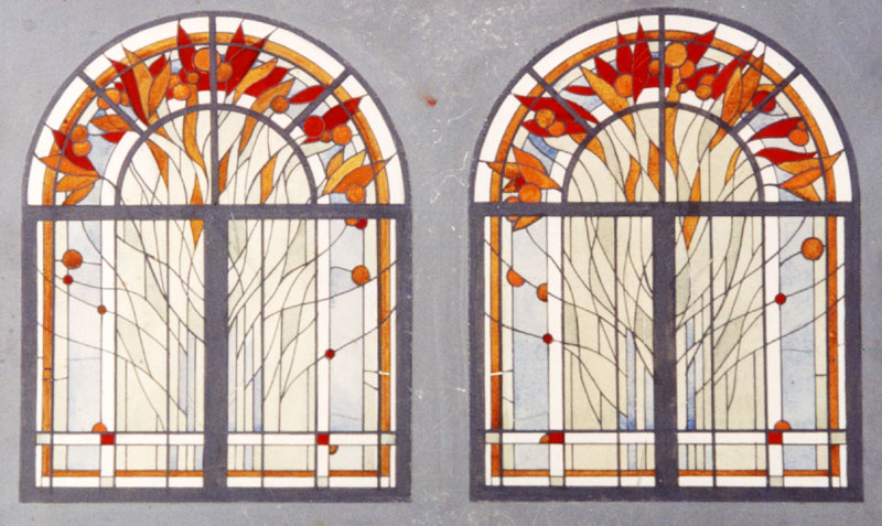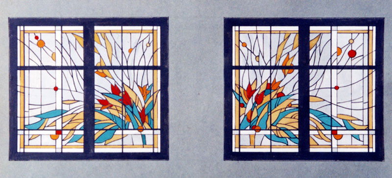 Glasmalereientwürfe "Wintergarten" für Foyer der Bank Jugorskij