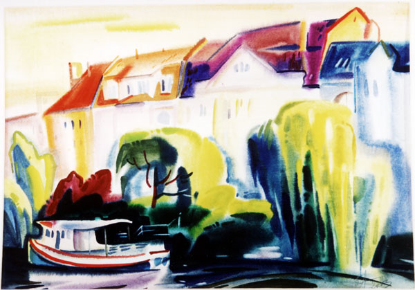 "Alter Kanal mit einem Schleppkahn" (Nikolaifleet, Hamburg)